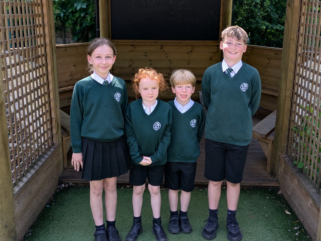 From Reception to Year 2, children should wear a white polo t-shirt. From Year 3 to Year 6, children should wear a white shirt with a clip-on school tie. All children may choose to wear a school V-neck sweatshirt or cardigan with the school logo; black skirt or trousers/shorts. Green gingham summer dresses can also be worn in warmer weather. Children are to wear sensible black shoes.