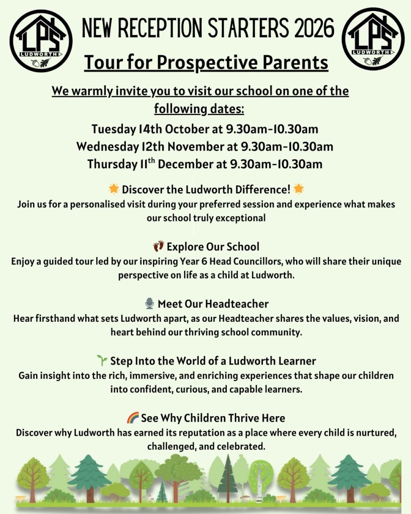 In the meantime, we invite you to explore the information on our website to get a sense of the warm, vibrant, and engaging environment we offer here at Ludworth Primary School. We look forward to welcoming you and your child to our school family!
